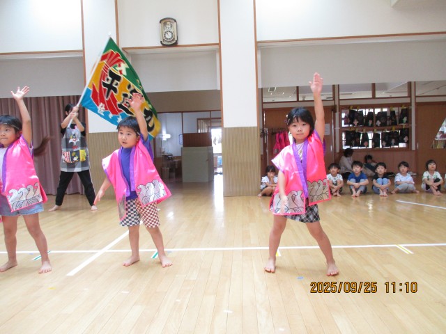 9月27日は以上児運動会がありました。いよいよ運動会本番でドキドキしていた子どもたちでしたが、お家の人たちが見ている中最後まで頑張りました。どの競技にも真剣な表情で頑張る姿が見られ、沢山の成長が感じられました!