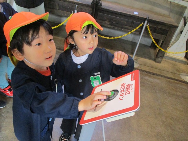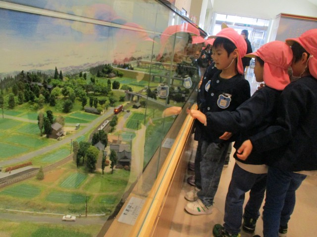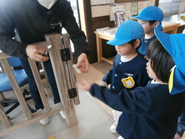 3、4歳児、そして消防署と交番の見学を終えた5歳児がくりでんミュージアムに行ってきました!電車の切符を貰ってワクワクしていた子ども達。実際に電車が走るジオラマを見たり、車掌さんの帽子と服を着用して写真を撮ったりなど遠足を楽しみました。