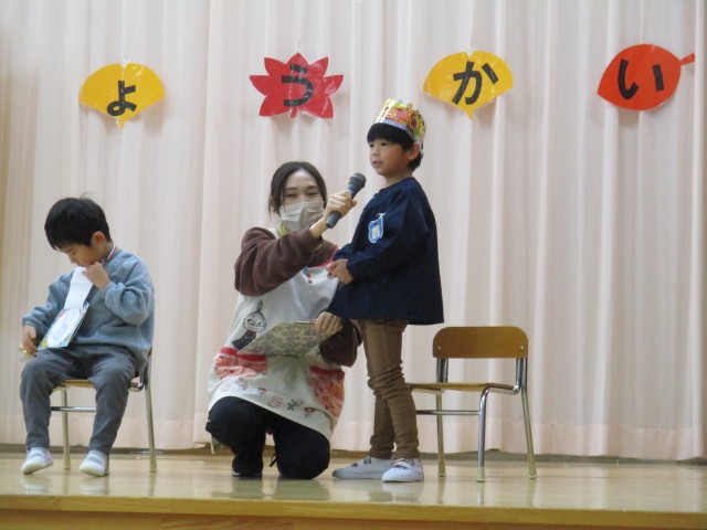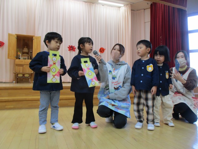 10月生まれのお友達の誕生会をしました。誕生児のお友達は元気よくインタビューに答えていました!