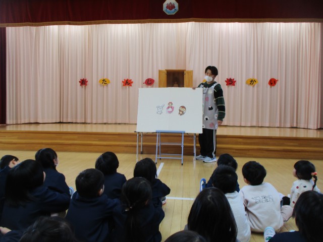 出し物は、七五三の由来に関するパネルシアターでした。七五三のお祝いは、子どもたちが健康に元気に育ってくれたことに「ありがとう」と神様に感謝するお祝いです。子どもたちがこれからもずっと元気で大きくなってくれることを願っています!