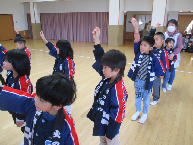 11月13日は「防火啓発の日」の行事に子どもたちが参加しました。幼年消防クラブ員の4、5歳児と3歳児の子どもたちが”防火の誓い”を大きな声で誓い、火遊びはしない約束を再度みんなで確認しました。