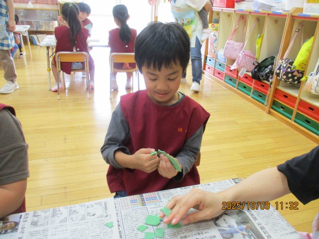 3、4、5歳児クラスは、芸術文化祭で使用する装飾の製作を行いました。芸術文化祭で自分たちが製作した作品が飾られることを楽しみにしている子どもたちでした!
