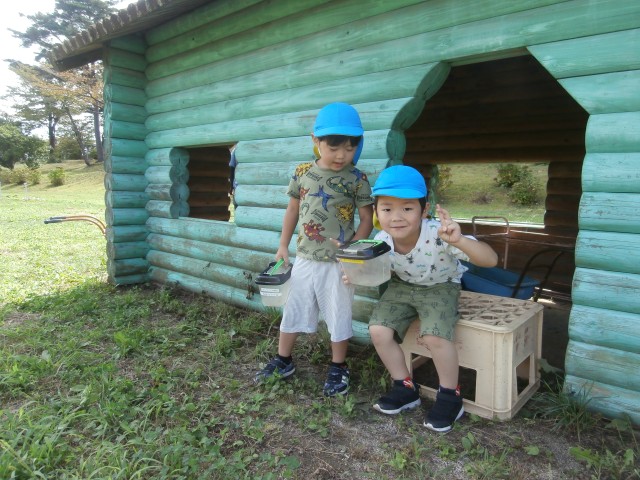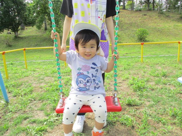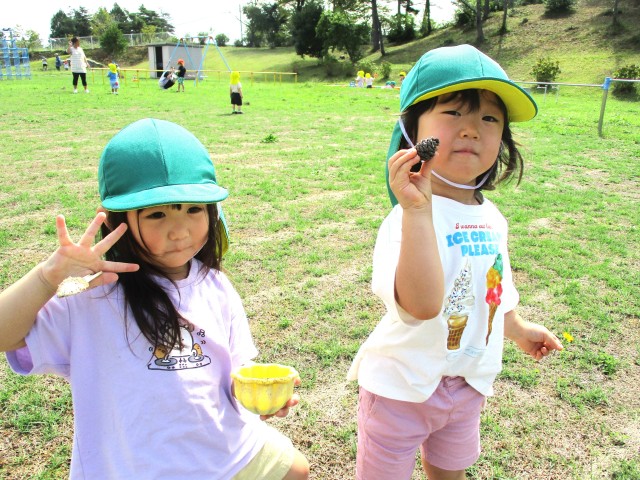 広い園庭には沢山の虫が出てきていて、夏から秋への季節の移り変わりを感じます。虫取りやブランコ、砂場遊びなど思い思いに好きな遊びを楽しんでいました!
