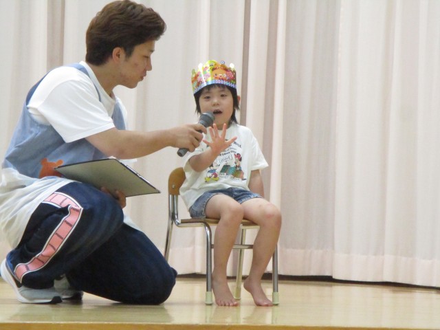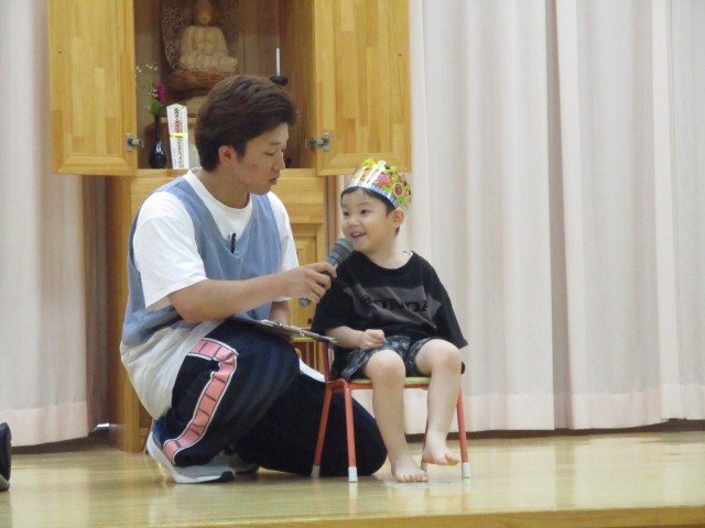 今日は、9月生まれのお友達の誕生会でした!誕生児のお友達はステージで一生懸命に質問に答える姿が見られました。